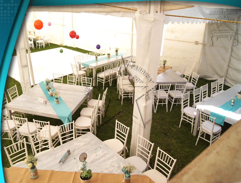 Mesas Imperiales para 12 personas, Mesa redonda, Mesa rectangular, Mesita de bar, Periqueras y Mesa cuadrada.